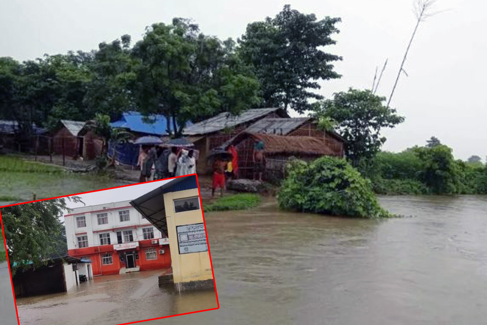 गौरादहमा १३ घर डुबानमा, स्वास्थ्य कार्यालय जलमग्न