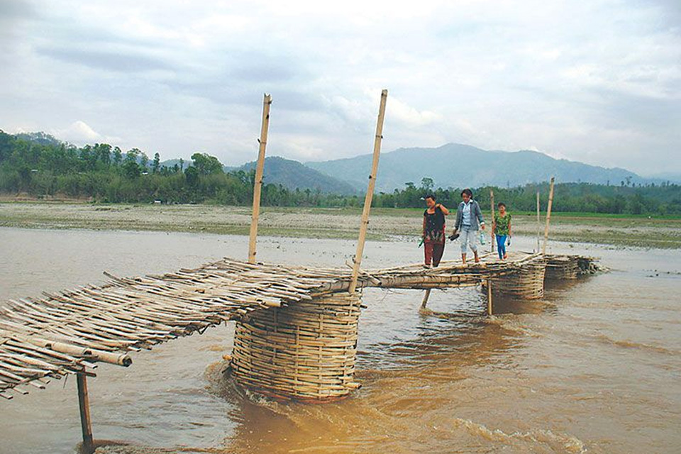 इलाम- सुक्खायाममा टेम्पो चढेर महमाई र दानाबारी आउजाउ गर्न कठिन छैन । बीचमा पर्ने माईखोलामा बाँसको अस्थायी पुल भएकाले साइकल र मोटरसाइकलमा हुइँकिन पनि सहज छ । इलामको माई नगरपालिकास्थित महमाई र दानबारीबीचको माइखोलामा अस्थायी पुलबाट तर्दै स्थानीय ।तस्बिर स् विप्लवरकान्तिपुर तर, बर्खा ...