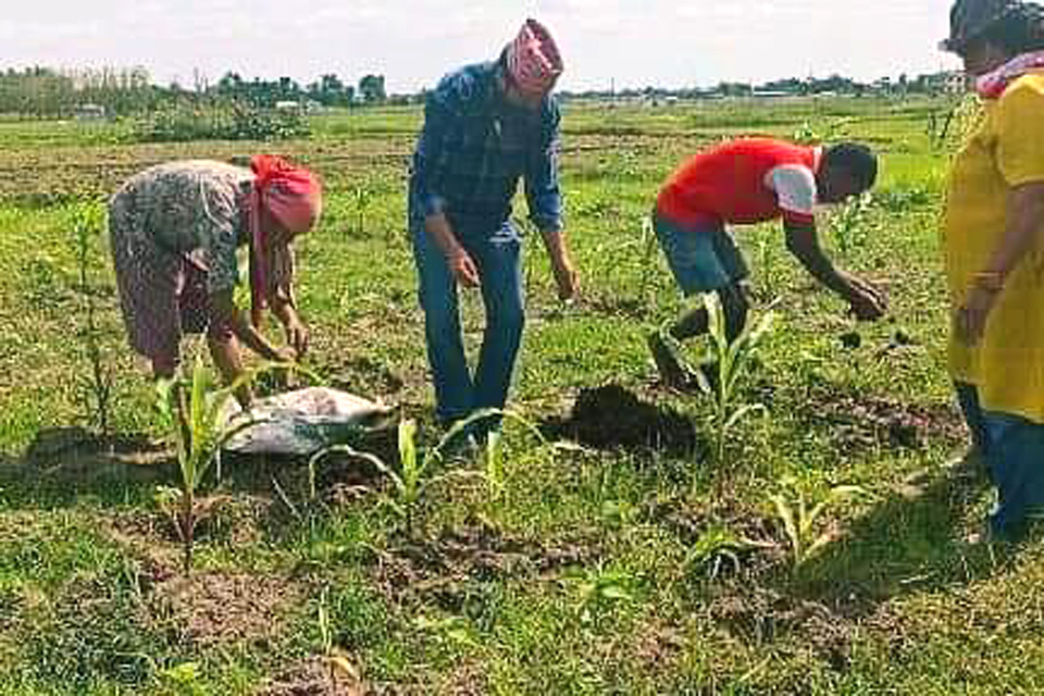 कृषिकर्ममा क्षितिज नाट्य समूहका कलाकार