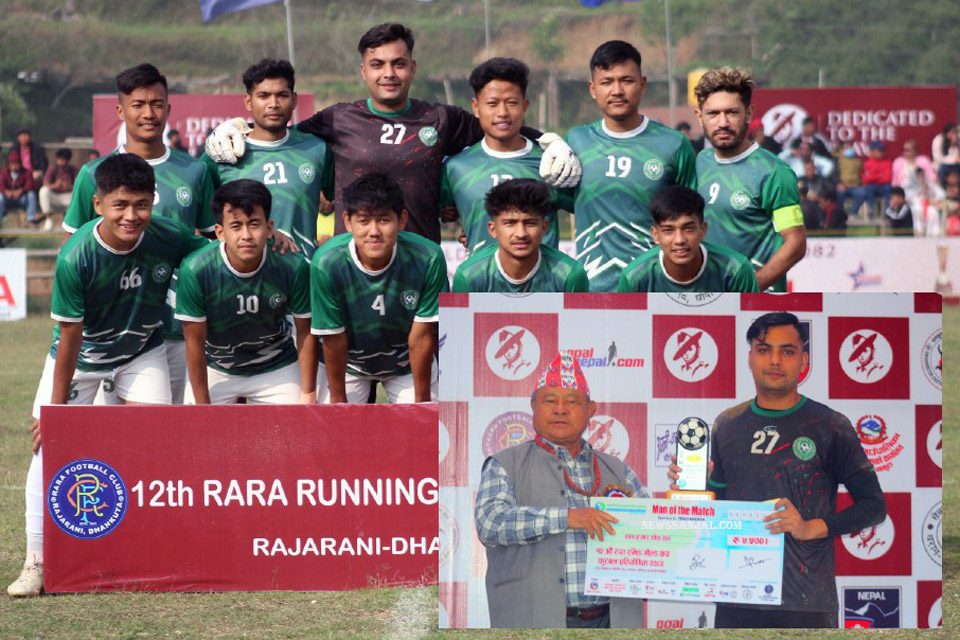 धनकुटा । साविक विजेता सल्हेश युवा क्लब सिरहालाई पहिलो खेलमा रोक्दै बिर्तामोड युनाइटेड एफसी झापा यहाँ जारी १२औँ राजारानी (रारा) गोल्डकपको सेमिफाइनलमा प्रवेश गरेको हो । बिर्तामोड टाइब्रेकरमा भाग्यमानी सावित भएको हो । रारा एफसी धनकुटाले आयोजना गरेको प्रतियोगिताको ...