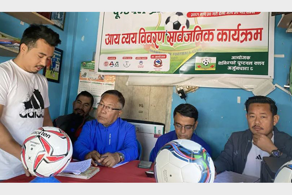 अर्जुनधारा । झापाको अर्जुनधारा ७ मा आयोजित तेस्रो यु-१८ वडास्तरीय फुटबल प्रतियोगिताको आय-व्यय आइतबार सार्वजनिक गरिएको छ । शनिश्चरे एफसीले गत माघमा प्रतियोगिता आयोजना गरेको थियो । प्रतियोगिता संयोजक टेकराज तिलिङको अध्यक्षता र अर्जुनधारा ७ का वडाध्यक्ष गोविन्द खतिवडाको ...
